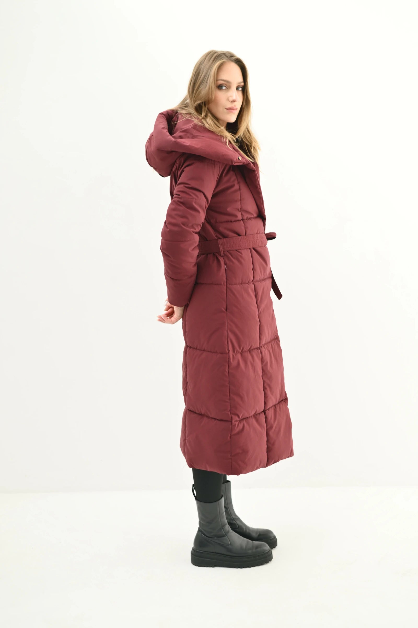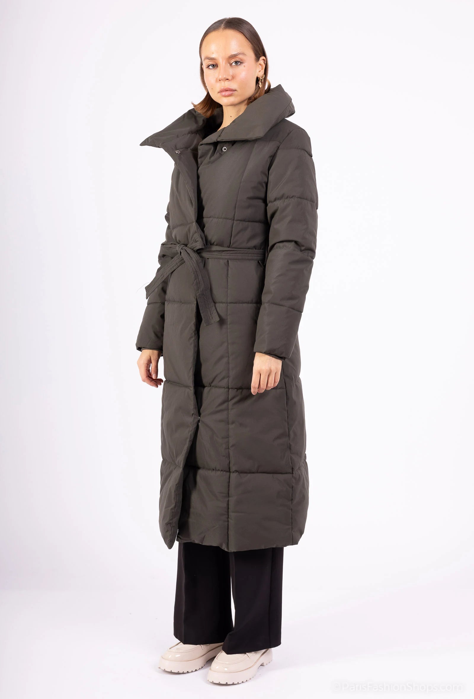 Stay warm while making a style statement with this belted long puffer coat. Its high wrap-around collar effectively shields against the cold, while the tie belt highlights your silhouette. Lightweight yet warm, it provides optimal comfort to face winter with elegance. Available in various colors to suit your every desire, it's the must-have piece for the cold season.