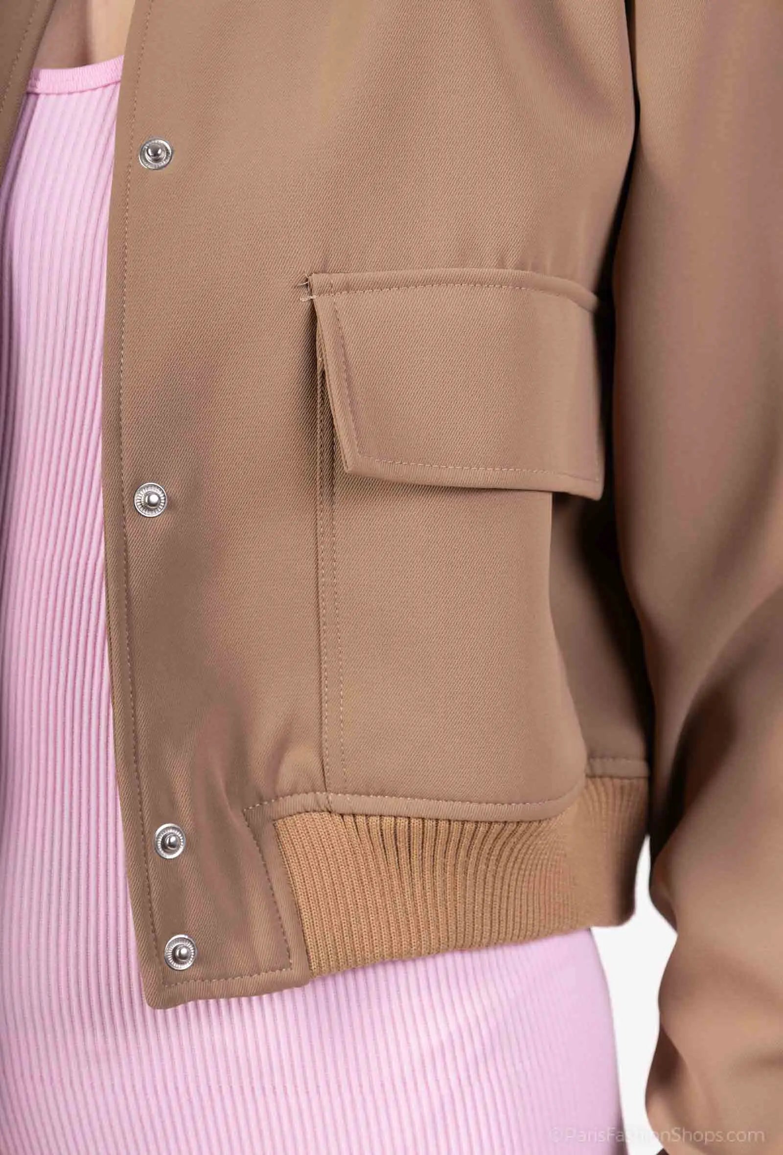 Short jacket with a casual and structured design, featuring a visible zip closure at the front. It has two flap pockets for a discreet utility spirit, while the ribbed finishes at the cuffs and hem add a touch of comfort and support. An easy-to-match model, perfect for completing an urban silhouette.