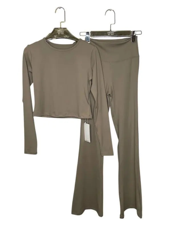 This two-piece set combines comfort and style with its flared cut and shaping fabric. The long-sleeve top hugs the figure while the high-waisted pants elegantly enhance the silhouette. Perfect for an active and feminine look every day.
