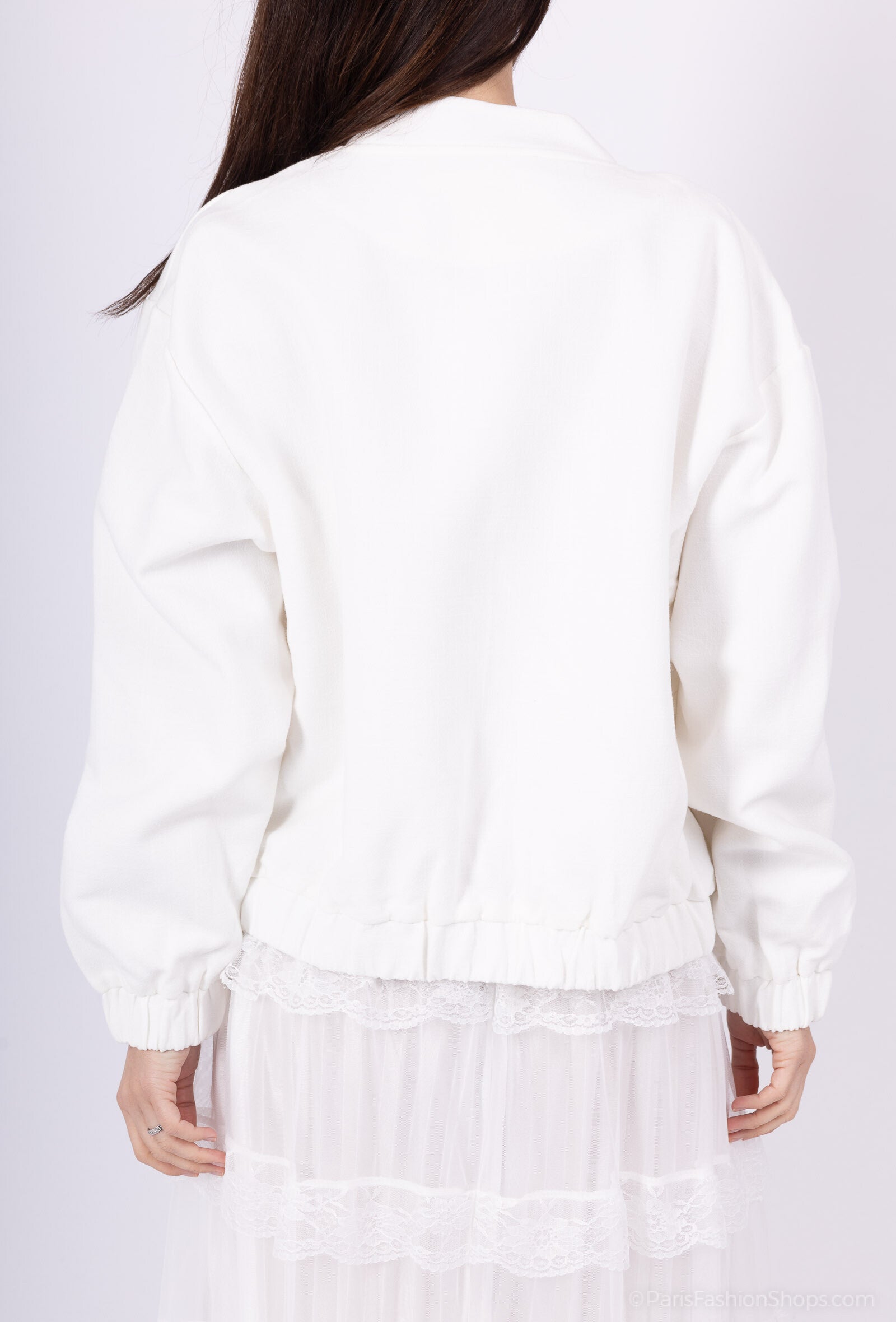 The jacket features a classic bomber silhouette with a soft collar, rib-knit trim, and a clean front closure that maintains its timeless appeal. Its lightweight composition makes it perfect for pairing over tops, shirts, or slim knitwear. The structured yet easy-to-wear fit ensures comfort and movement without sacrificing style.