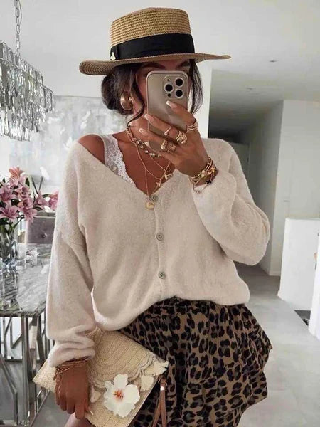 Indulge in luxurious comfort with this Super Soft Cardigan crafted with 20% Baby Alpaca and elegant button detailing, designed to bring warmth, softness, and timeless sophistication to your fall and winter wardrobe. Blending premium natural fibers with refined craftsmanship, this cardigan delivers an unmatched level of coziness and elegance for the cooler seasons.