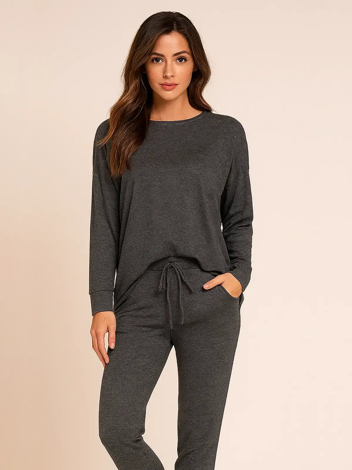 This is an oversized hi-lo suit with long sleeves. This suit provides coverage and style, best for winter loungewear. It gives a warm and cozy appeal. Its versatility makes it a strong seller for boutiques, appealing to customers who want trend-driven pieces with timeless appeal.
