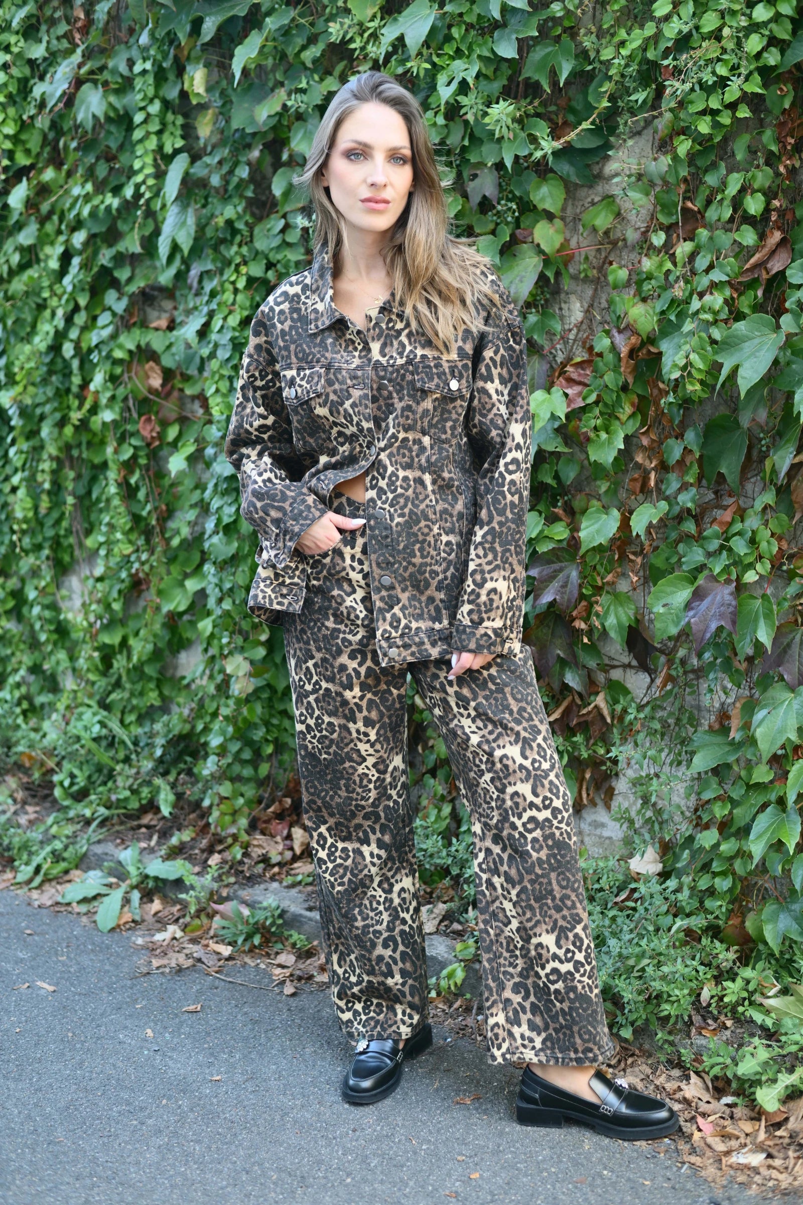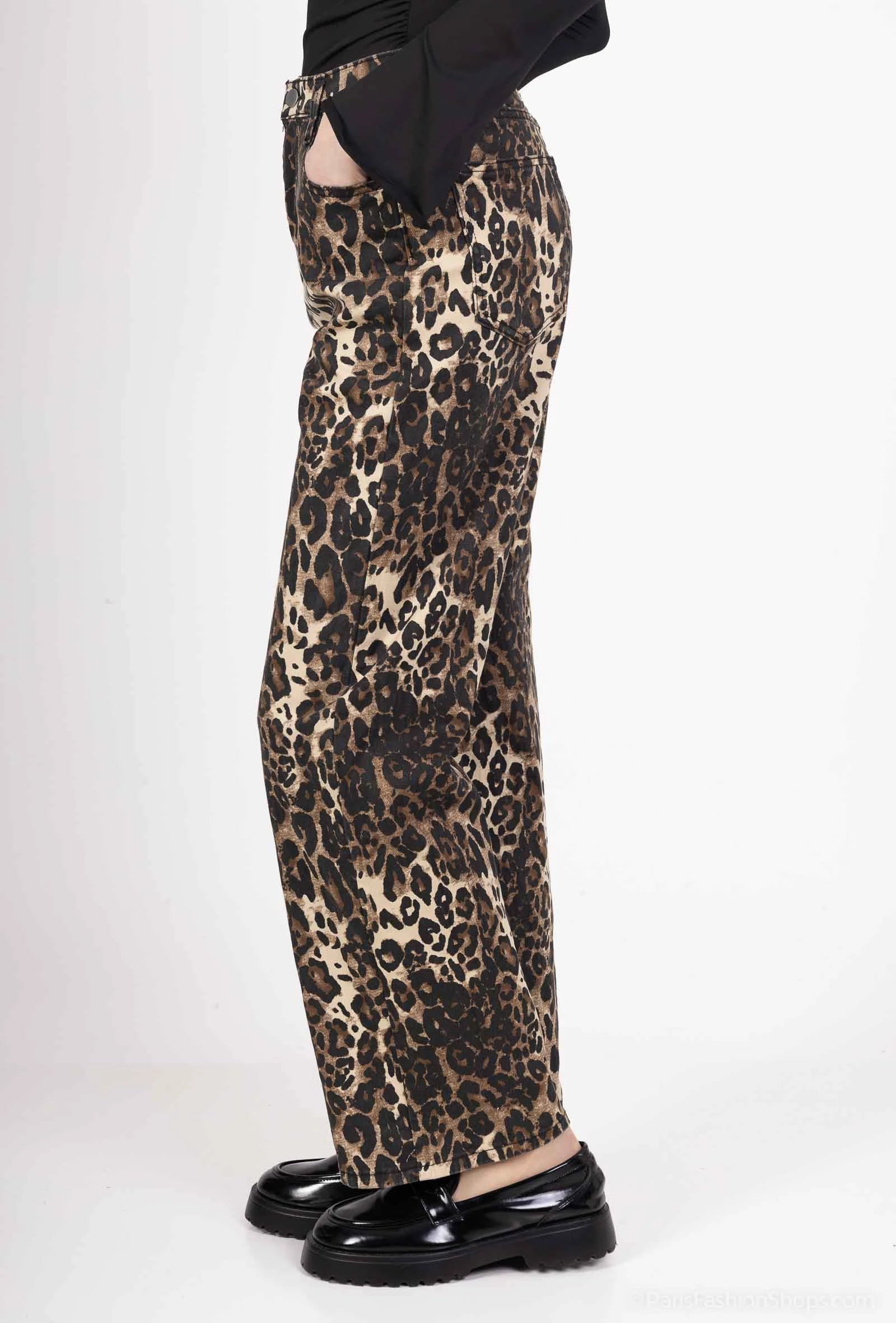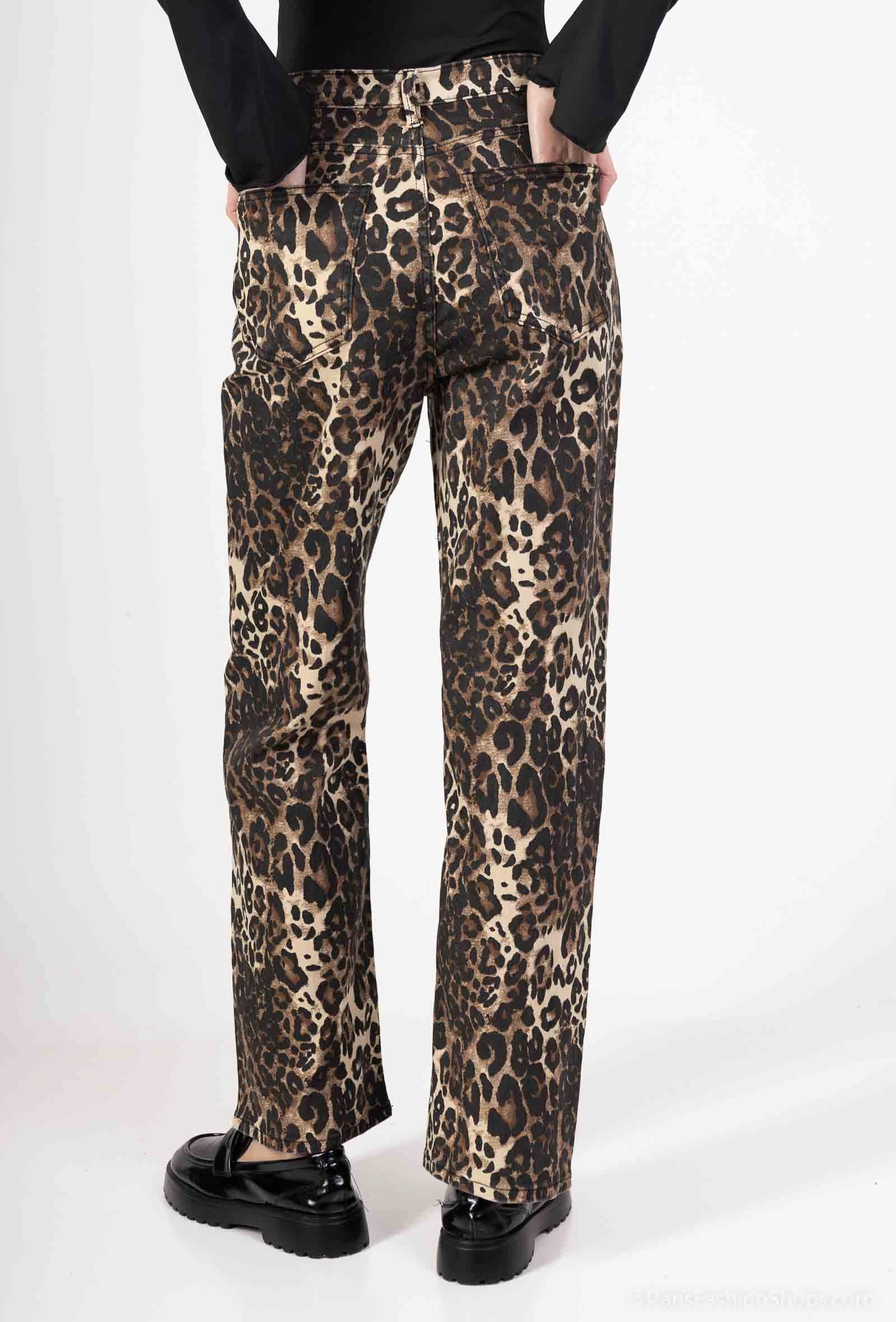 Trendy leopard print jeans, 95% cotton, 5% elastane, perfect for spring/summer, imported from China. Comfort and style guaranteed.