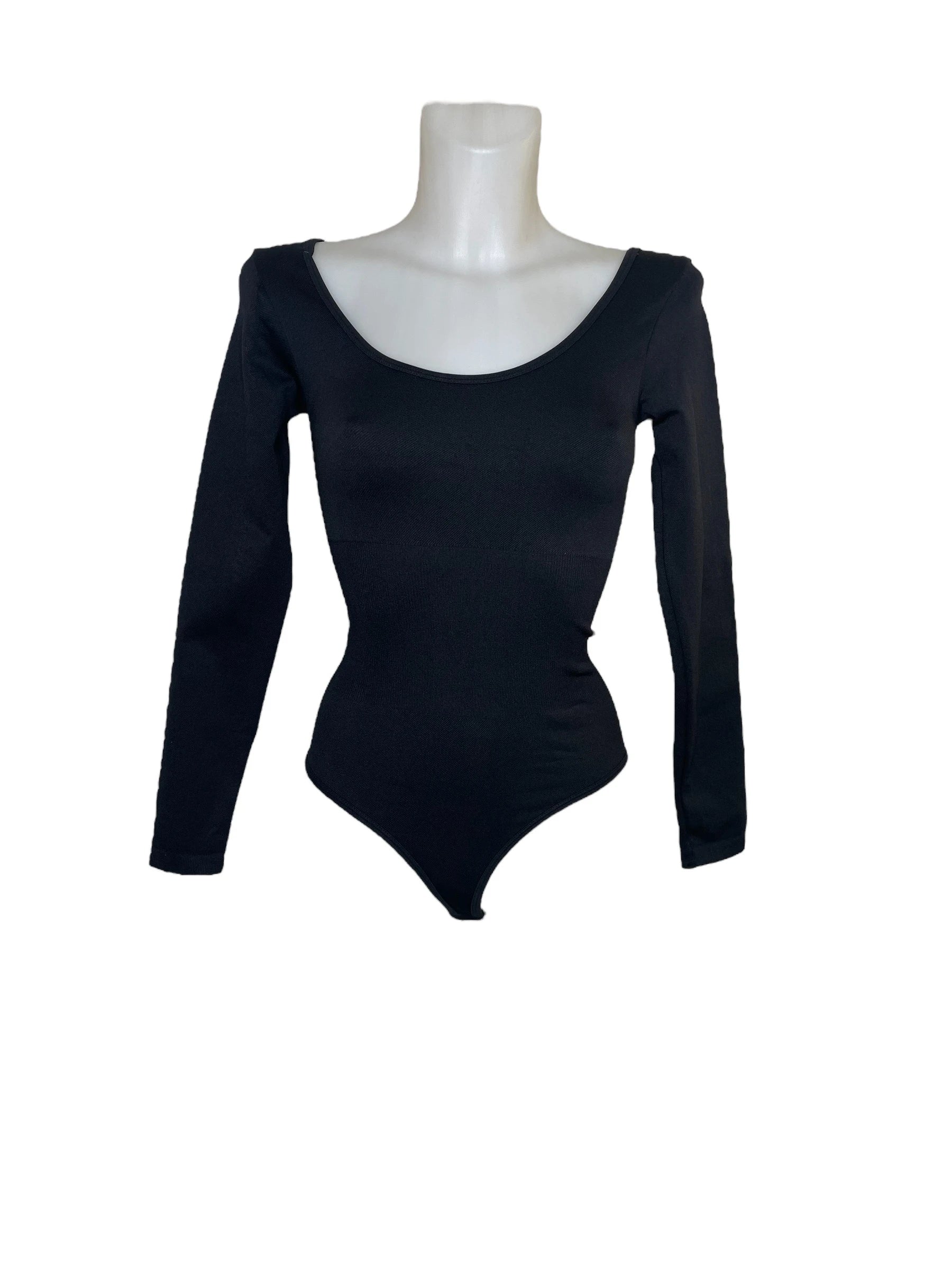 Long-sleeved polyester shaping bodysuit, ideal for autumn/winter, designed in China.