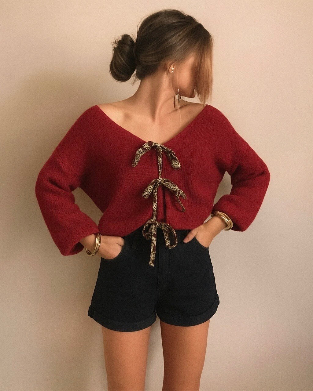 Make a bold yet sophisticated statement this season with this Vest featuring Leopard Knots, a distinctive layering piece designed to add texture, warmth, and contemporary flair to your fall and winter wardrobe. Perfect for those who love refined details with a touch of character, this vest combines timeless knitwear craftsmanship with a modern, fashion-forward design.