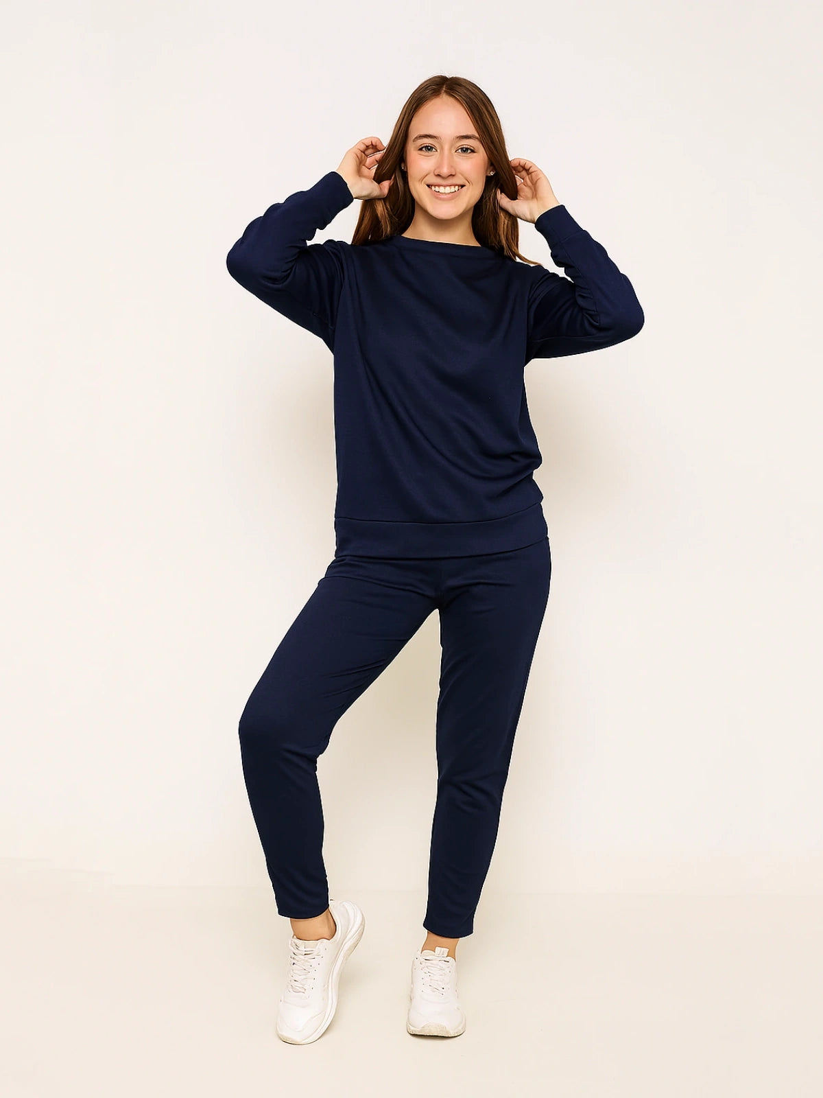 The Ladies Long Sleeve Plain Set from Global Fashion is a premium quality loungewear that is comfortable and elegant. Featuring a classic long-sleeve top resembles crew neck t-shirts and matching jogger pants, this plain co-ord set is perfect for customers who love versatile, easy-to-style outfits. Its minimalist design makes it ideal for everyday wear and a reliable addition to boutique collections.