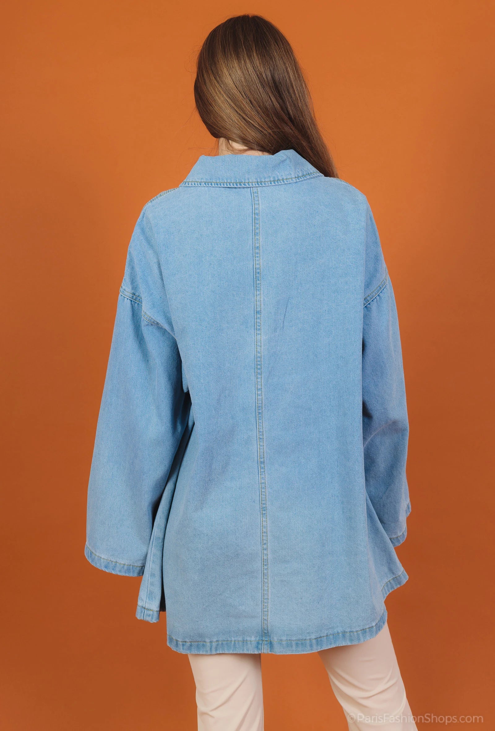 Denim shirt dress, ideal for autumn, half cotton, half polyester, made in China. Perfect for a casual look.