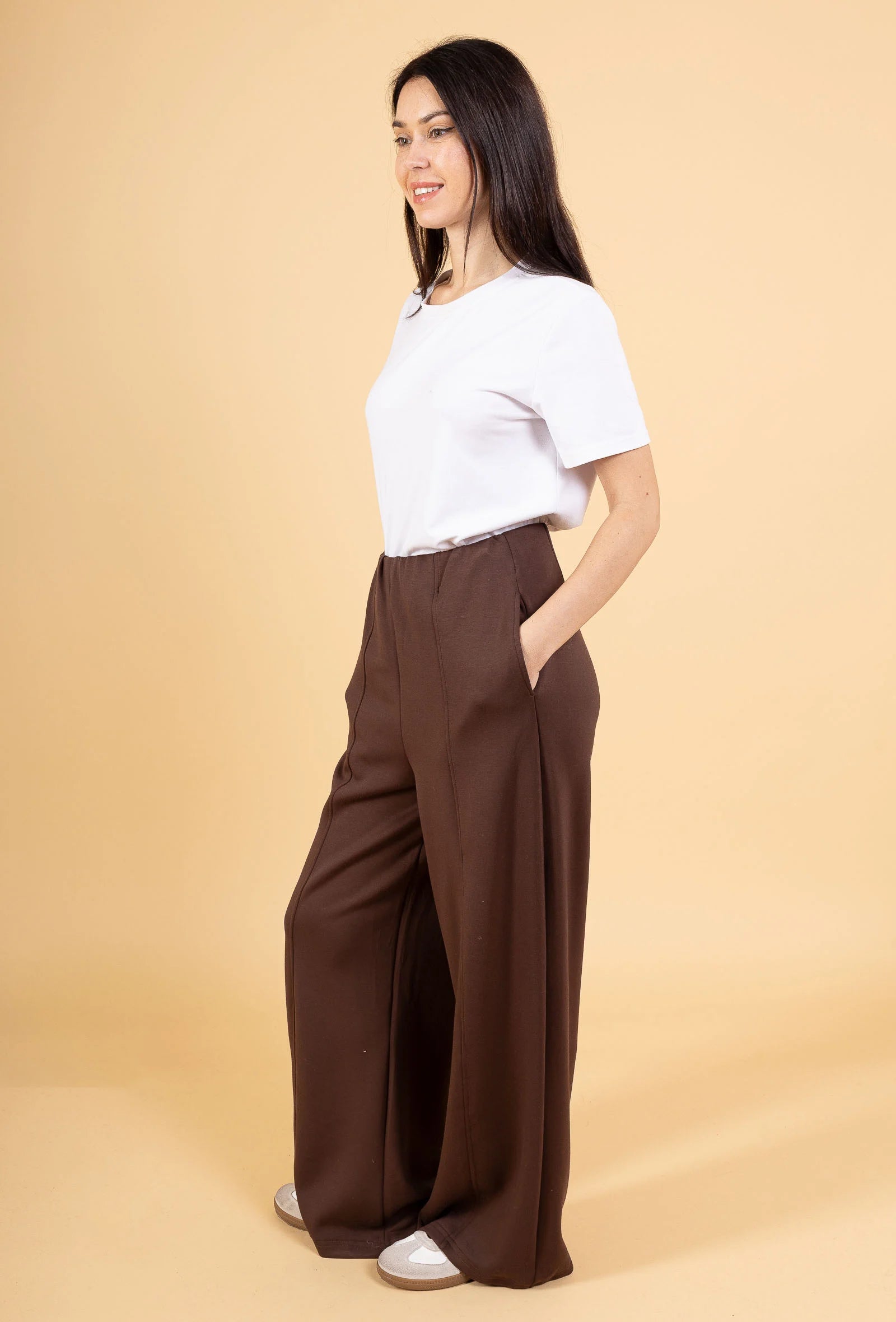 The DENVER pants blend comfort and elegance with their flowing wide-leg cut and stretchy high waist. The soft fabric drapes beautifully, while vertical darts elongate the silhouette. Easy to wear every day, they perfectly complement the matching jacket or pair with basics for a relaxed yet polished look.