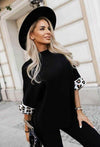 Infuse your cold-weather wardrobe with elegance and a hint of boldness with this High-Neck Sweater featuring Leopard Cuffed Sleeves, a refined yet fashion-forward piece designed for the fall and winter seasons. This sweater effortlessly combines timeless sophistication with a touch of modern flair, making it an essential staple for the woman who values comfort, confidence, and style.