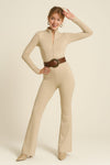 The LANA Jumpsuit is designed for women who want a sleek, confident, and modern look with effortless comfort. This fitted zip-up jumpsuit shapes and hugs the body in all the right places, creating a smooth and flattering silhouette. The high collar adds a stylish, structured touch that enhances the neckline and gives the outfit a bold, elegant finish.