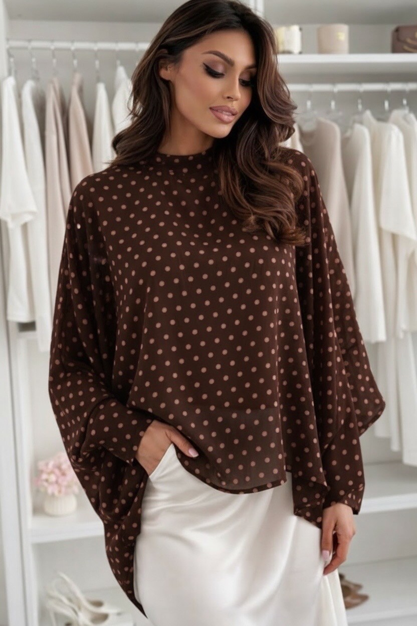 Enjoy comfort and playful style with our Loose Polka Dot Print Blouse with Viscose Lining, designed for spring and summer wear. Made from lightweight, breathable fabric, this blouse feels soft and airy, keeping you comfortable throughout warm days. The viscose lining adds an extra layer of softness against the skin, providing better comfort and coverage without adding heaviness.