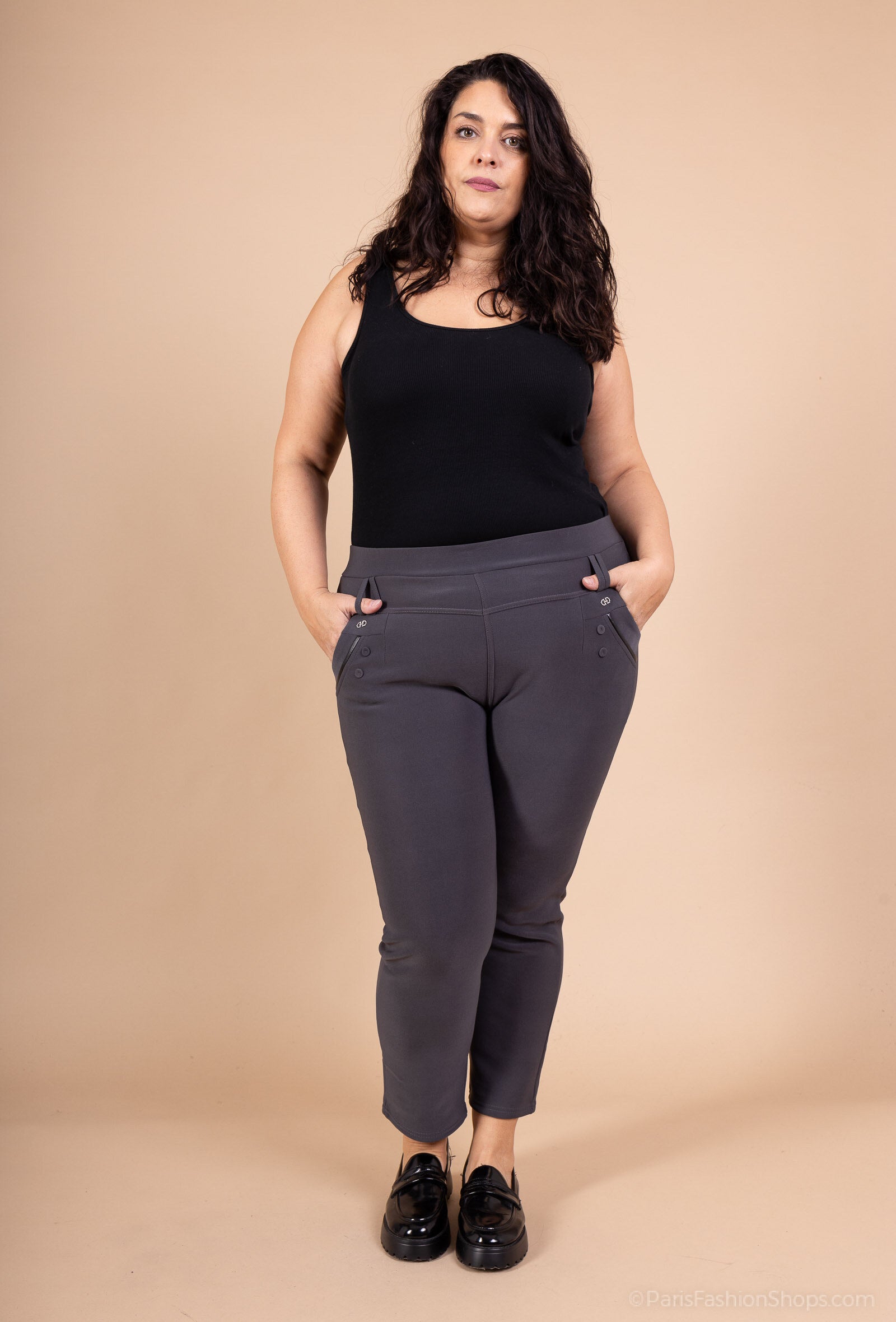 Crafted from a soft and stretchy blend of 85% polyamide and 15% elastane, they provide a flattering silhouette and all-day comfort. The button details on the pockets add a fashionable touch, making them ideal for casual outings or layering with oversized sweaters and jackets.