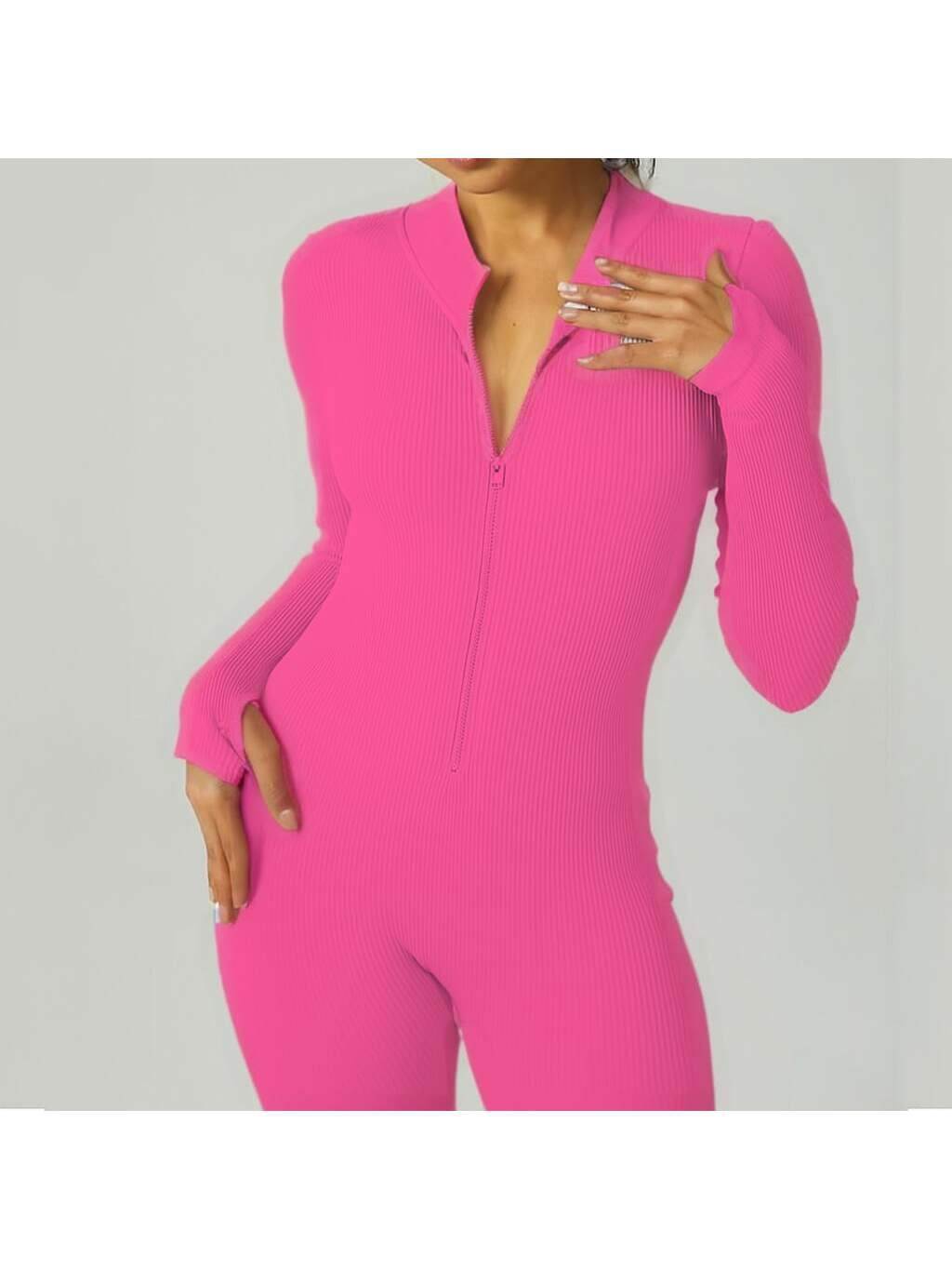 Step into sleek confidence with our Ribbed Zip-Up Jumpsuit with Long Sleeves and High Collar, a piece designed to shape, flatter, and elevate your everyday style. Made from a premium, stretchy ribbed fabric, this jumpsuit hugs the body in all the right places, enhancing your natural silhouette while providing exceptional comfort and flexibility.