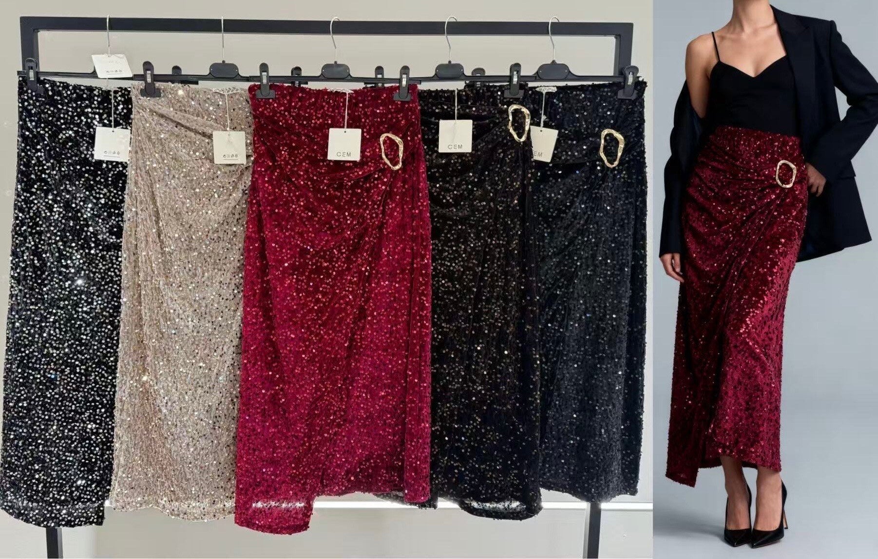 Perfect for pairing with blouses, sweaters, or fitted tops, this sequin skirt transitions effortlessly from day to night. Whether you’re dressing up for a celebration, dinner, or holiday event, it brings a sense of sparkle and sophistication to every occasion.