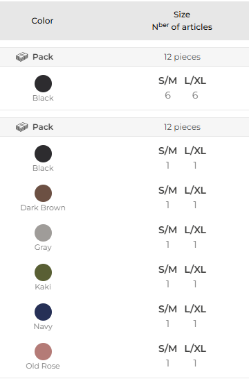 Pack Sizes (UK) S/M XXL