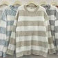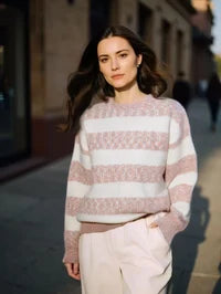 The classic striped pattern adds a playful yet sophisticated touch, giving this sweater a modern edge while maintaining its simplicity. The balanced color tones make it easy to pair with anything from denim jeans to skirts or tailored pants creating endless outfit possibilities.