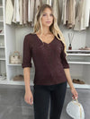 Made from premium-quality knit fabric with a subtle metallic sheen, it offers a soft and comfortable feel while adding a hint of sparkle that catches the light beautifully. The V-neckline enhances the feminine silhouette, while the short sleeves make it ideal for layering under jackets, blazers, or coats during cooler months. The decorative buttons along the front or shoulders (depending on design) lend a polished and refined finish, elevating the overall look.